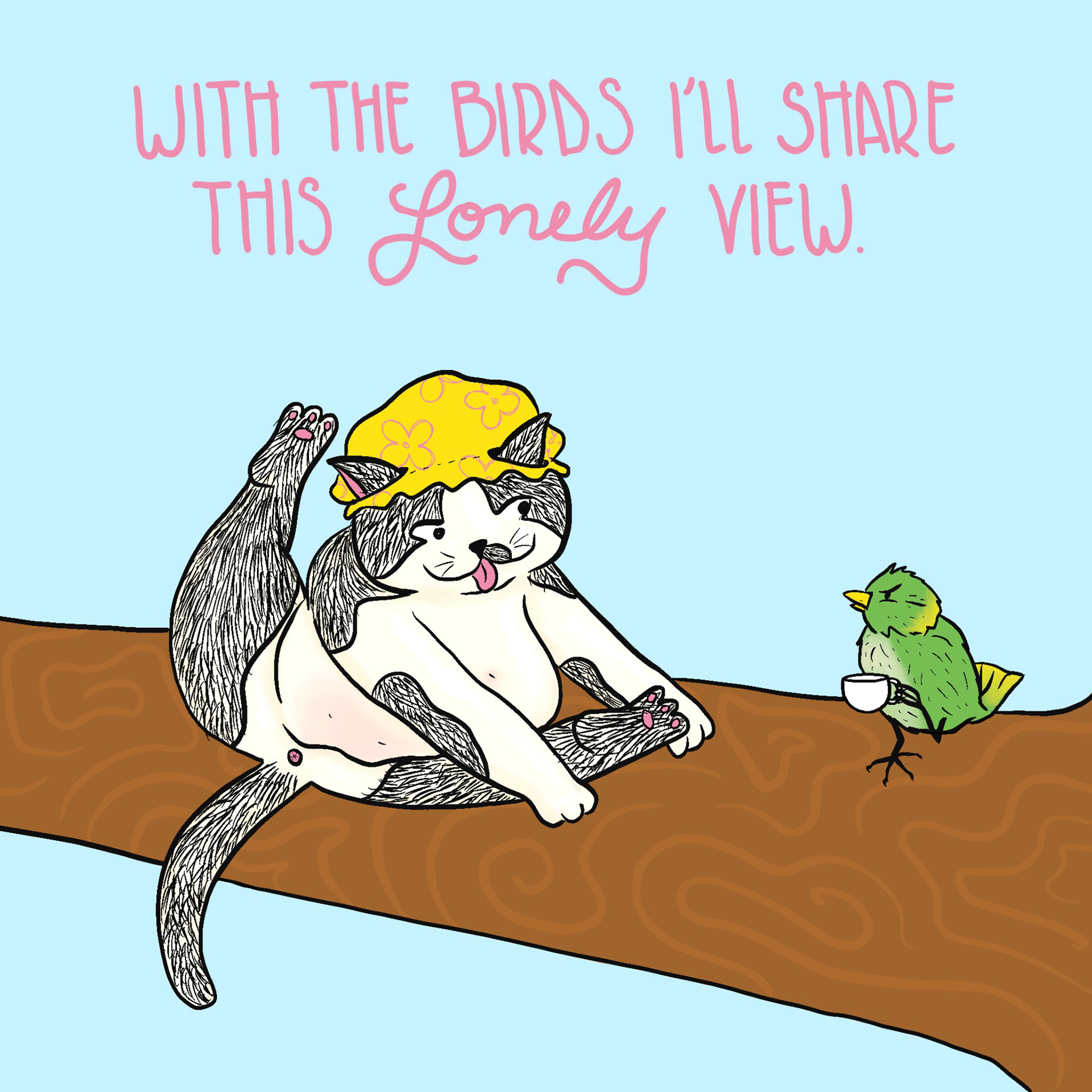 A part of a weekly design challenge on Instagram. Word: Birdseye #keepweeklychallenge @keepillustrative My cat Middens letting it hang out with the birds.